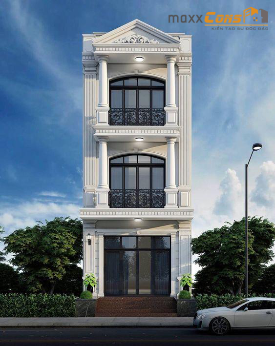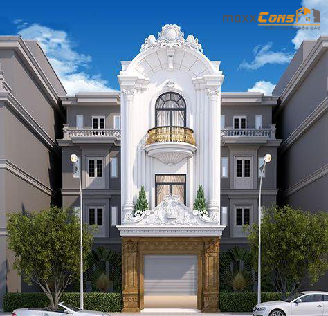 Mẫu nhà phố kiến trúc tân cổ điển Pháp sử dụng các nguyên vật liệu hiện đại đầy sang trọng đang được sử dụng phổ biến trong các công trình xây dựng hiện nay để tăng tính thẩm mỹ, góp phần tạo nên một hiệu ứng vô cùng hoàn hảo cho không gian ngoại thất của căn nhà phố này. Ngoài ra, chúng ta cũng phải dành sự khen ngợi cho đội ngũ kiến trúc sư của maxxCons khi họ kết hợp các nguyên vật liệu với các gam màu một cách hoàn hảo. Bởi vậy, căn nhà trở nên hoàn mỹ hơn khi lột tả được khí chất, quyền lực, đẳng cấp của phong cách kiến trúc tân cổ điển Pháp.