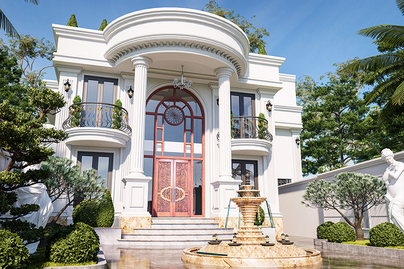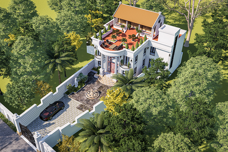 Biệt thự tân cổ điển 2 tầng với nhà thờ trên mái là một lựa chọn độc đáo và sang trọng. Đây là một thiết kế kiến trúc phổ biến trong kiến trúc tân cổ điển, kết hợp giữa phong cách cổ điển và hiện đại.
