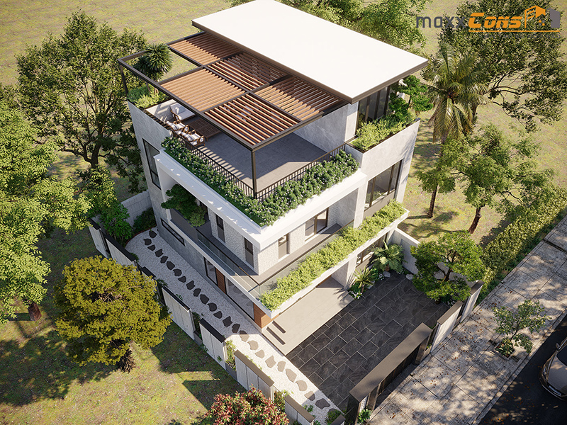 Với tình hình kinh tế ngày càng phát triển, mức sống của người dân cũng ngày càng tăng cao chính vì vậy mà nhu cầu thiết kế nhà cửa, thiết kế biệt thự hiện đại , nhà ống, nhà phố đã không còn là điều gì quá xa vời. Giữa vô vàn các công ty thiết kế kiến trúc thì kiến trúc maxxCons vẫn đứng vững suốt bao năm qua bởi sự khác biệt tạo nên phong cách riêng của công ty. Với tiêu chí đặt mong muốn của khách hàng được ưu tiên hàng đầu, chúng tôi đang không ngừng cố gắng trau dồi và phát triển từng ngày để mang đến những thiết kế biệt thự sang trọng đến gia chủ. Mẫu biệt thự hiện đại dưới đây maxxCons muốn giới thiệu đến quý khách hàng yêu thích vẻ đẹp hiện đại kết hợp cỏ cây xanh mát vô cùng ấn tượng.