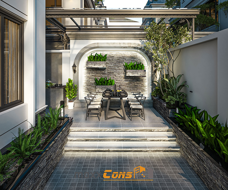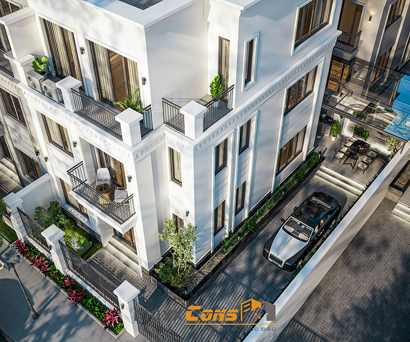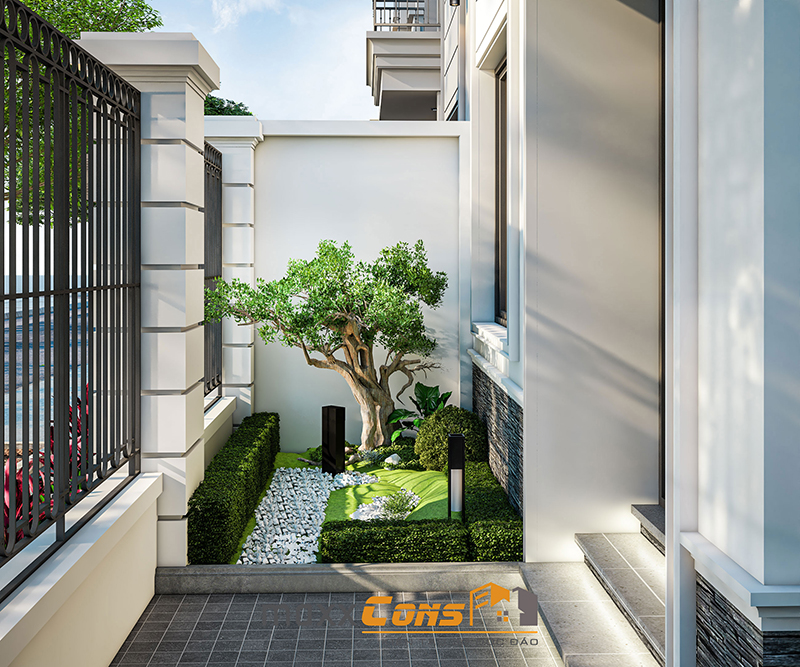Mẫu thiết kế biệt thự song lập 4 tầng mang phong cách hiện đại của CĐT tại Hạ Long kết hợp trang trí ngoại thất với tiểu cảnh mini tạo nên không gian sống hài hoà sinh động tận hưởng siêu tiện ích.