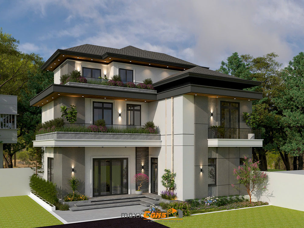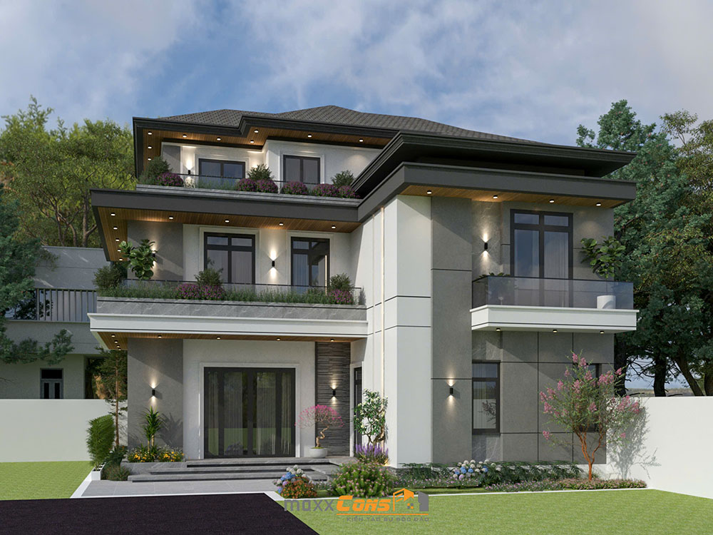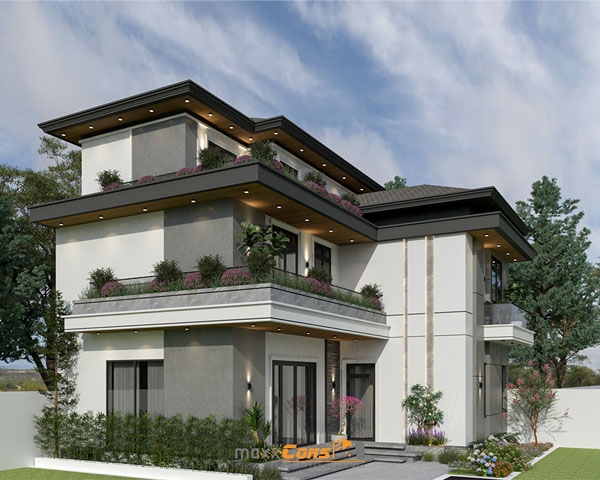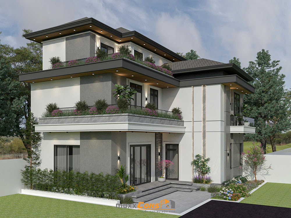 Một trong những điểm nhấn quan trọng của dự án là cách maxxCons đưa yếu tố xanh vào thiết kế. Các ban công được tận dụng làm khu vực trồng cây, hoa, tạo lớp đệm xanh giúp điều hòa vi khí hậu và tăng tính riêng tư cho không gian bên trong. Sân vườn được bố trí gọn gàng, hài hòa với kiến trúc, vừa tạo cảnh quan đẹp mắt, vừa là nơi thư giãn lý tưởng cho các thành viên trong gia đình sau những giờ làm việc căng thẳng.