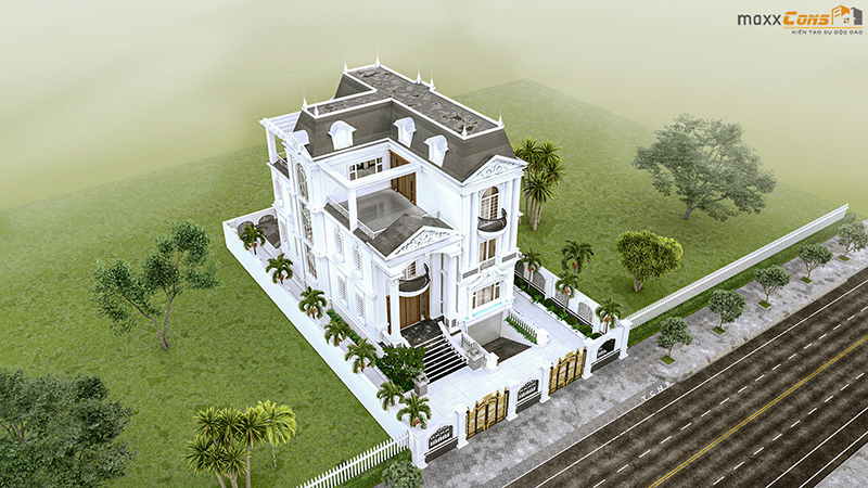 Phối cảnh tổng thể căn biệt thự 3 tầng tân cổ điển đẳng cấp