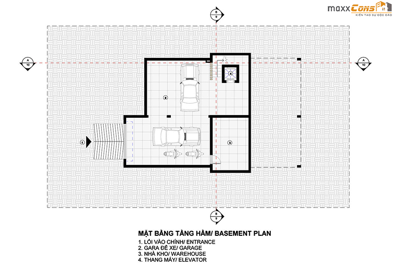 Mặt bằng tầng hầm để xe và nhà kho