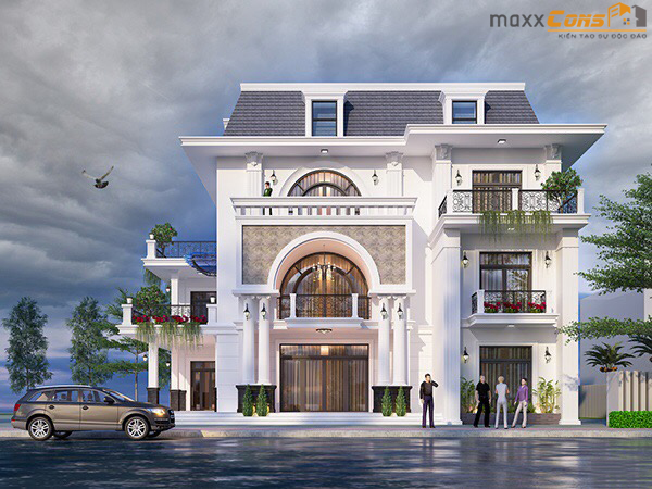 Mẫu thiết kế biệt thự tân cổ điển 3 tầng khang trang thoáng đãng tại Hưng Yên maxxCons giới thiệu tới quý khách hàng ngay dưới đây. Thiết kế mang lại vẻ đẹp sang trọng rộng rãi nguy nga tráng lệ khiến ai ai cũng phải trầm trồ vì vẻ đẹp đẳng cấp của ngôi nhà này.