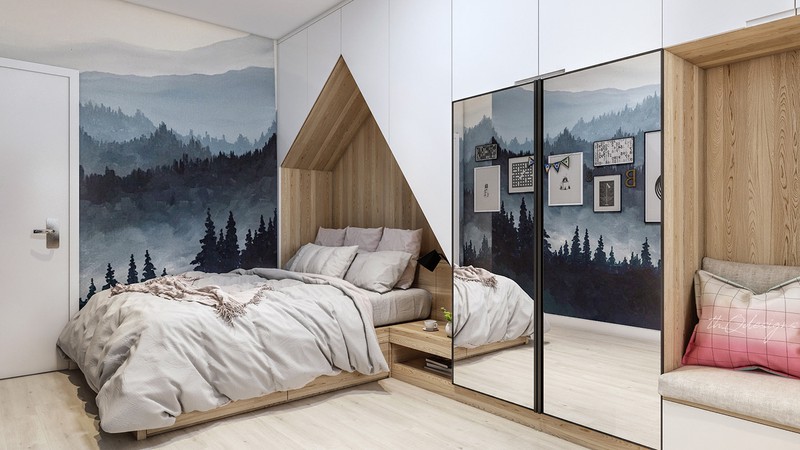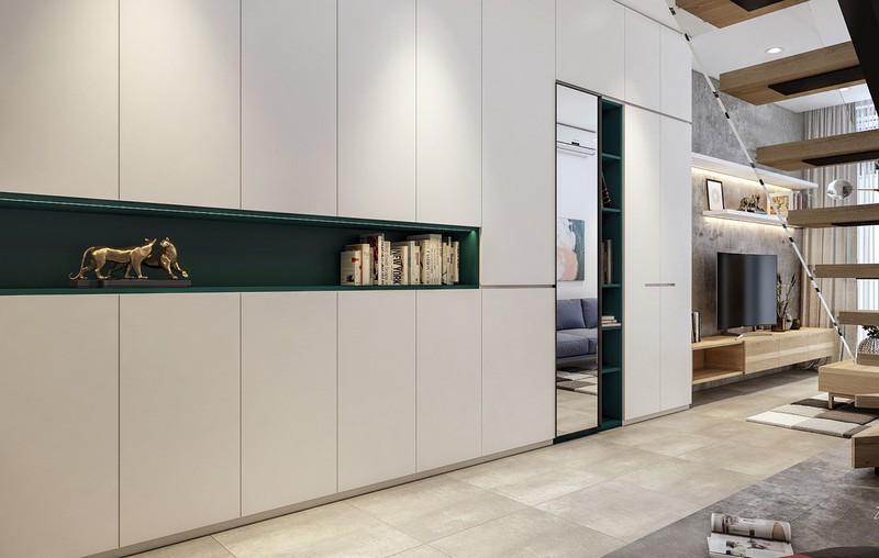 Sử dụng nội thất gắn vào tường hoặc thiết kế âm bên trong được nhiều gia đình có diện tích nhỏ áp dụng.