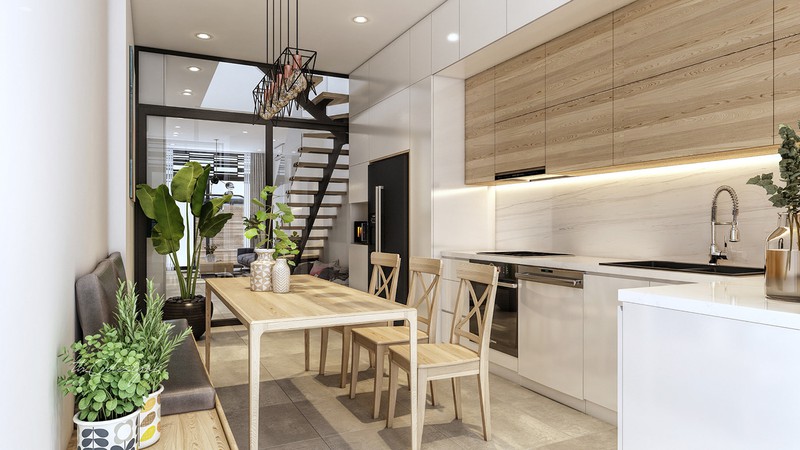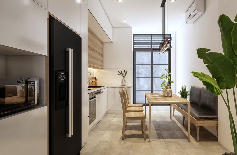 Bằng cách đưa thiên nhiên vào nhà, gia chủ đã mang đến một không gian ăn uống và sinh hoạt gần gũi, ấm cúng.