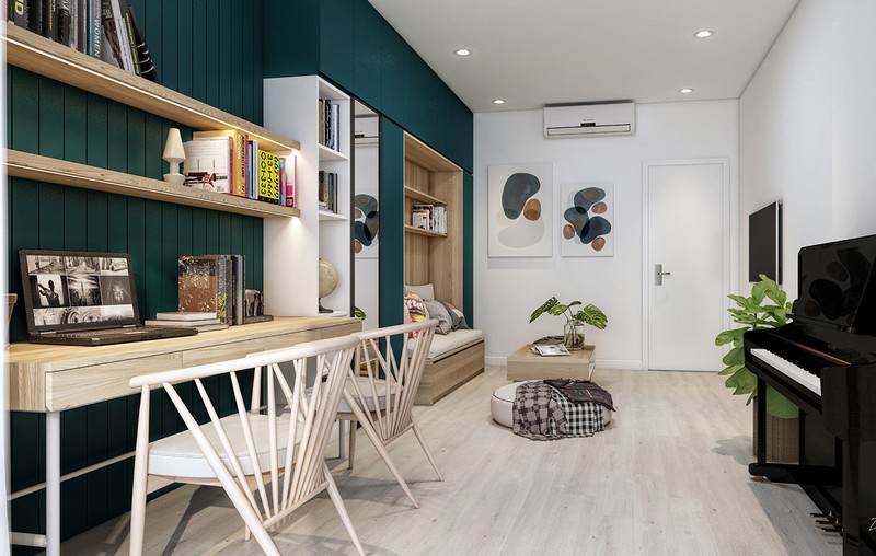 Bàn học các con đặt cạnh phòng sinh hoạt chung để bố mẹ tiện quan sát khi con học bài.