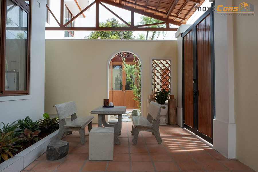 Gạch đất nung thô mộc, mái ngói đỏ hay lớp ngói vảy cá được vận dụng khéo léo để tạo điểm nhấn vừa gần gũi, vừa thời thượng cho ngôi nhà để dù thuộc thế hệ nào, gia đình vẫn có chung một cảm nhận chung về nơi mình sinh sống.