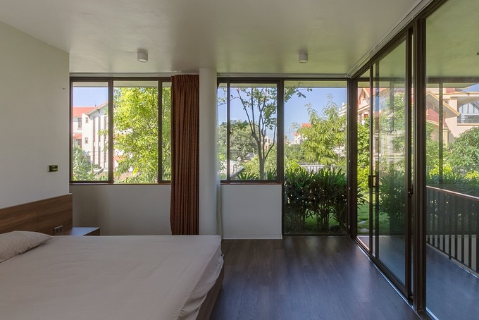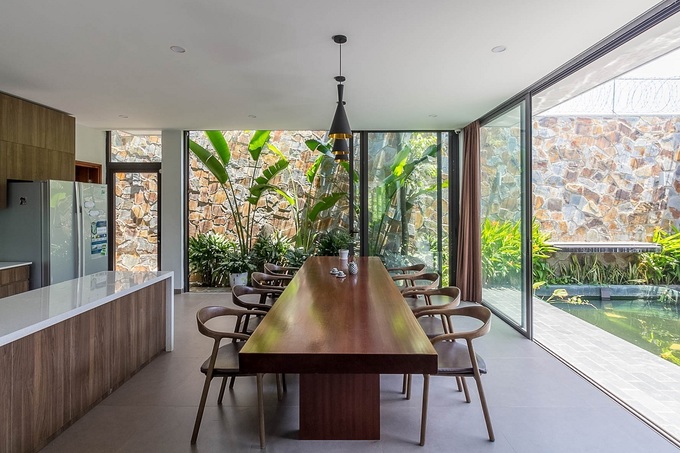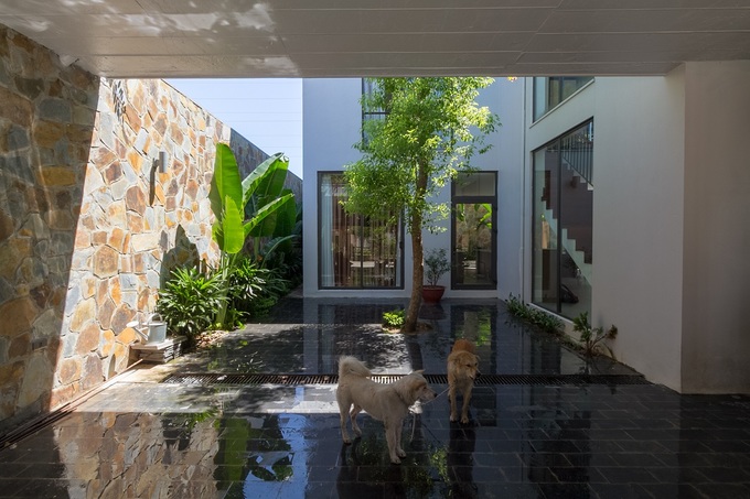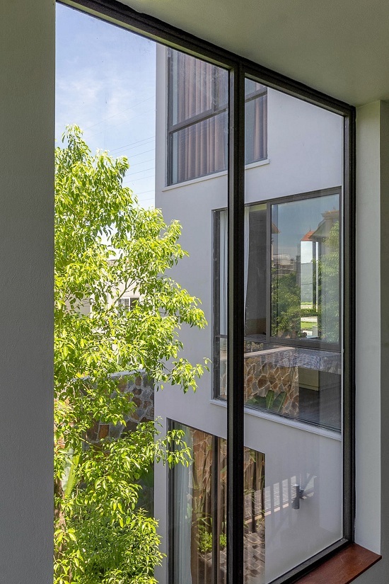 Nhờ bố cục nhà và những ô cửa lớn, công trình tận dụng tốt ánh sáng và gió tự nhiên.