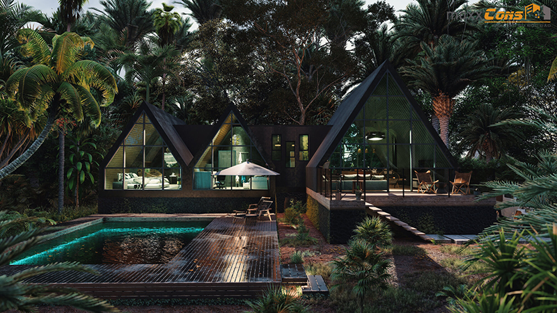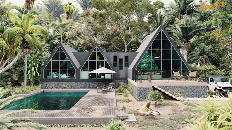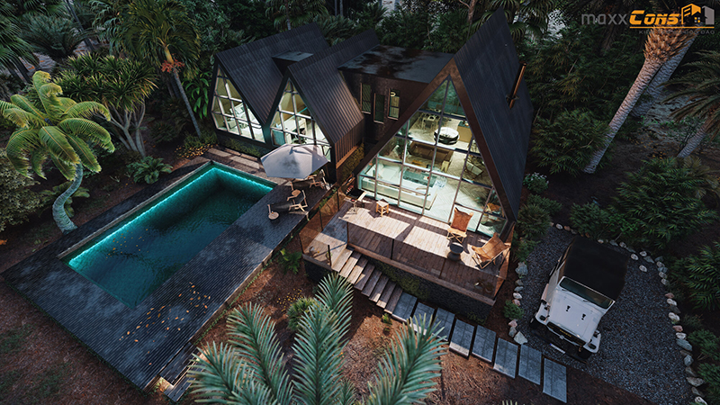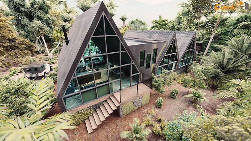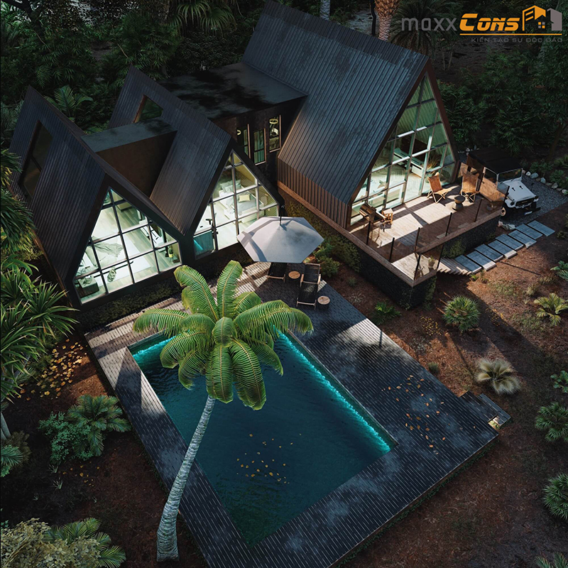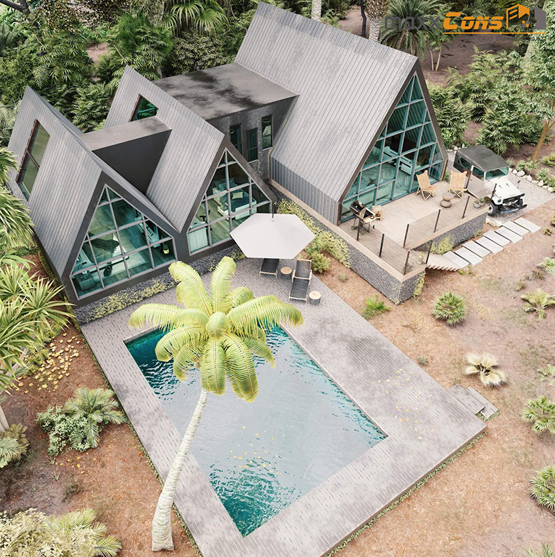 maxxCons xin giới thiệu với quý khách hàng mẫu nhà lắp ghép homestay đẹp nổi bật độc đáo giữa không gian thiên nhiên tươi mát.