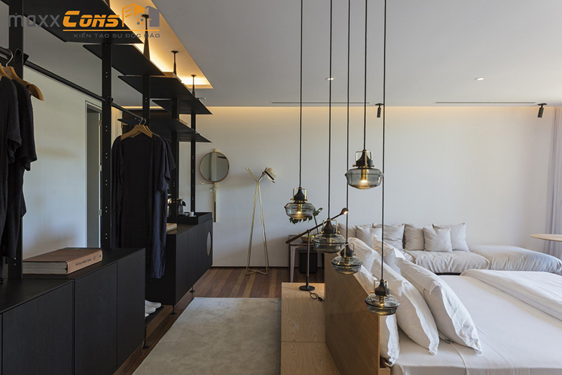 Không gian tủ để đồ và thay đồ phía sau phòng ngủ