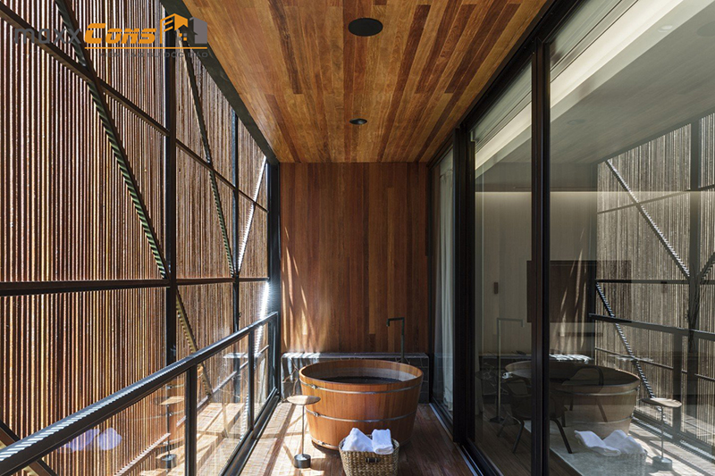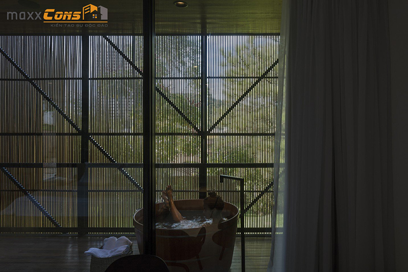 Bồn tắm nhỏ nhưng nhìn ra gần như toàn cảnh không gian không hề bị bí bách mà vẫn được thư thái thoải mái