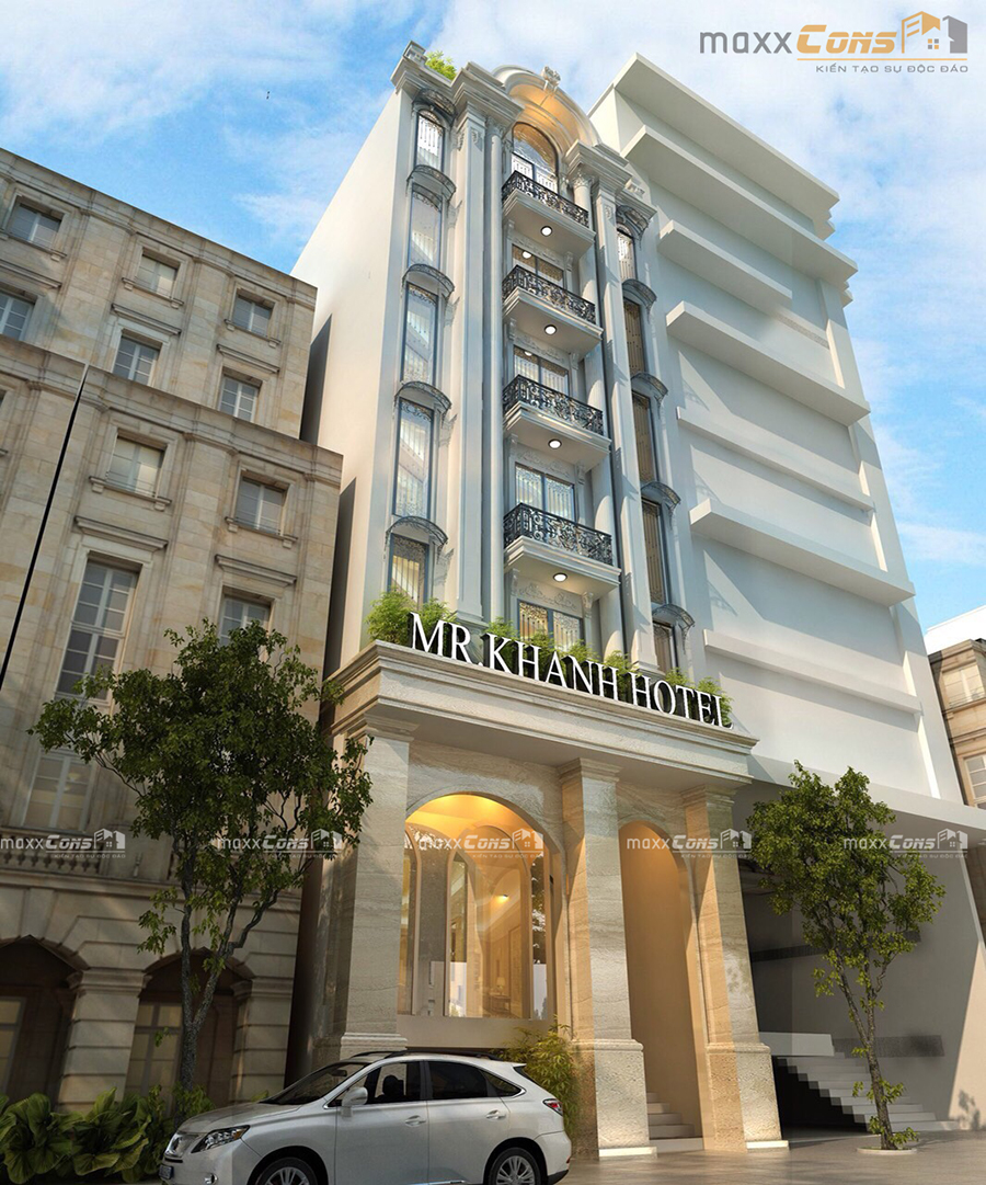 Mẫu nhà ống thiết kế kiểu dáng khách sạn đẹp, với những nét đẹp theo phong cách kiến trúc Pháp đây được gọi là công trình đẹp tinh tế mang nét đẹp hoàng gia quý tộc, ngày nay những mẫu thiết kế khách sạn như thế này được nhiều khách hàng yêu thích bởi vẻ đẹp sang trọng của nó, đây là công trình kiến trúc nổi bật hiện nay maxxCons đang tư vấn cho nhiều khách hàng đang có nhu cầu thiết kế khách sạn theo phong cách tân cổ điển đẹp
