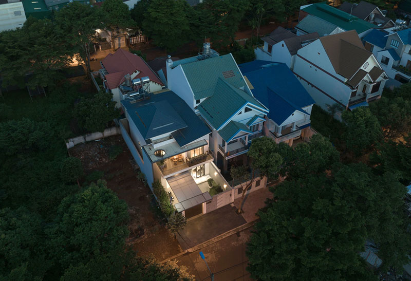 Để phù hợp với điều kiện thời tiết mưa nhiều tại địa phương, kiến trúc sư đã chọn phương án thiết kế mái ngói Nhật với phần chóp nhọn đặc trưng, cùng độ dốc phù hợp giúp thoát nước tốt.