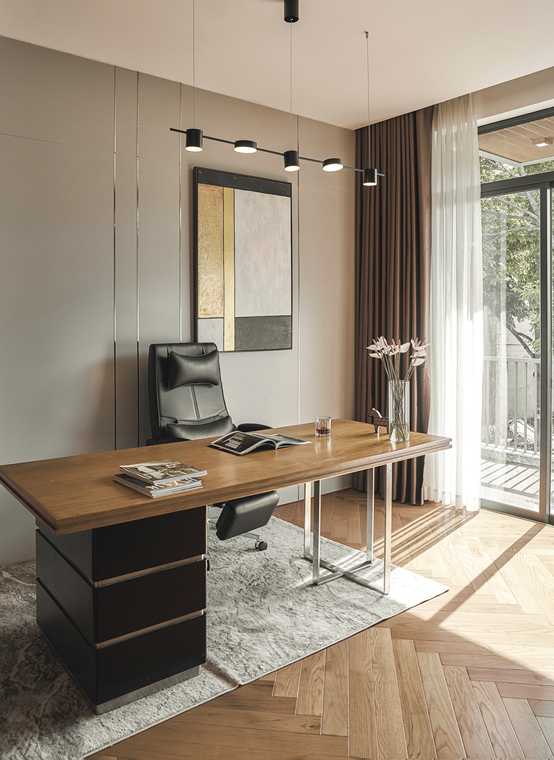 Nhờ hệ cửa kính sát trần, phòng làm việc luôn ngập tràn ánh sáng, nhưng vẫn đủ yên tĩnh để tăng sự tập trung.
