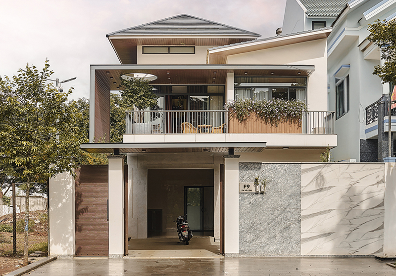 Giới thiệu độc giả mẫu thiết kế nhà ống 2 tầng 145m2 với hệ mái Nhật có độ dốc hợp lý giúp thoát nước tốt, tăng khả năng thích nghi của ngôi nhà với thời tiết mưa nhiều tại địa phương.