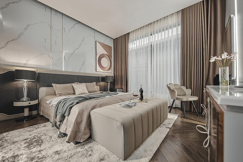 Tất cả 3 phòng ngủ đều có ban công hoặc cửa sổ hướng ra sân vườn, đi kèm với hệ cửa lớn để tạo sự kết nối giữa không gian trong nhà - ngoài trời.