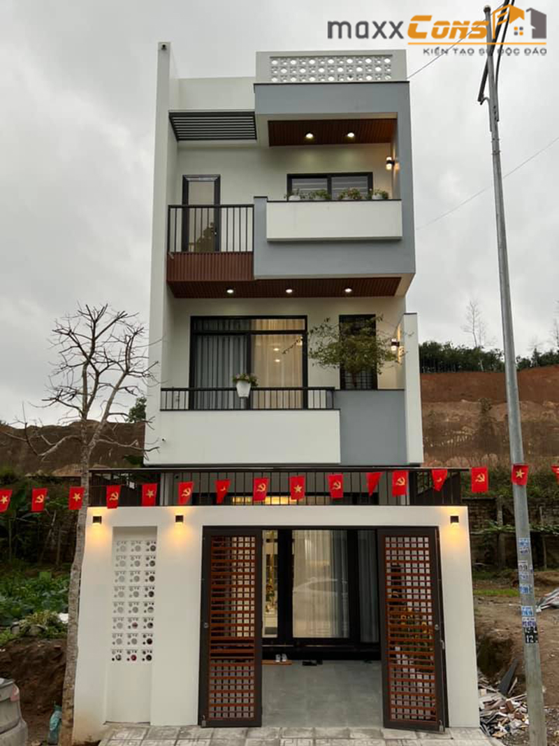 Thiết kế nhà ống 3 tầng hiện đại với diện tích 5x15m trên mảnh đất 5x20m nhưng chủ nhà không làm hết đất mà để làm sân để xe và tránh bụi bẩn vào nhà. Ngôi nhà đã được thiết kế thi công hoàn thiện và đưa vào sử dụng mời quý vị cùng tham khảo ngay dưới đây: