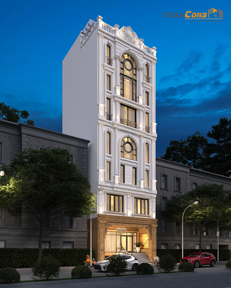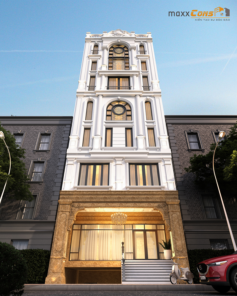 Tuy nhiên, phần ngoại thất có thể thiết kế hết sức đa dạng và linh hoạt để tạo dấu ấn cá nhân cũng như đáp ứng tính thẩm mỹ của bất cứ công trình nghệ thuật nào. Do đó, đội ngũ kiến trúc sư tài năng và dày dạn kinh nghiệm của maxxCons cho ra đời mẫu thiết kế nhà ống tân cổ điển sang trọng, quý phái hứa hẹn sẽ làm hài lòng bất cứ vị khách khó tính nào.