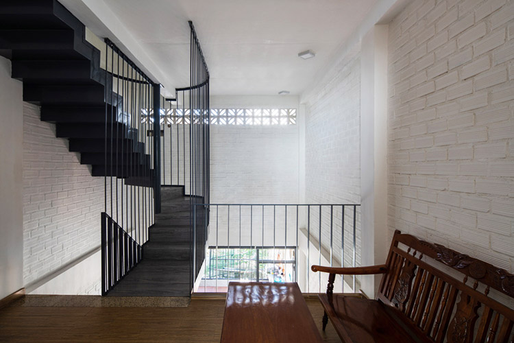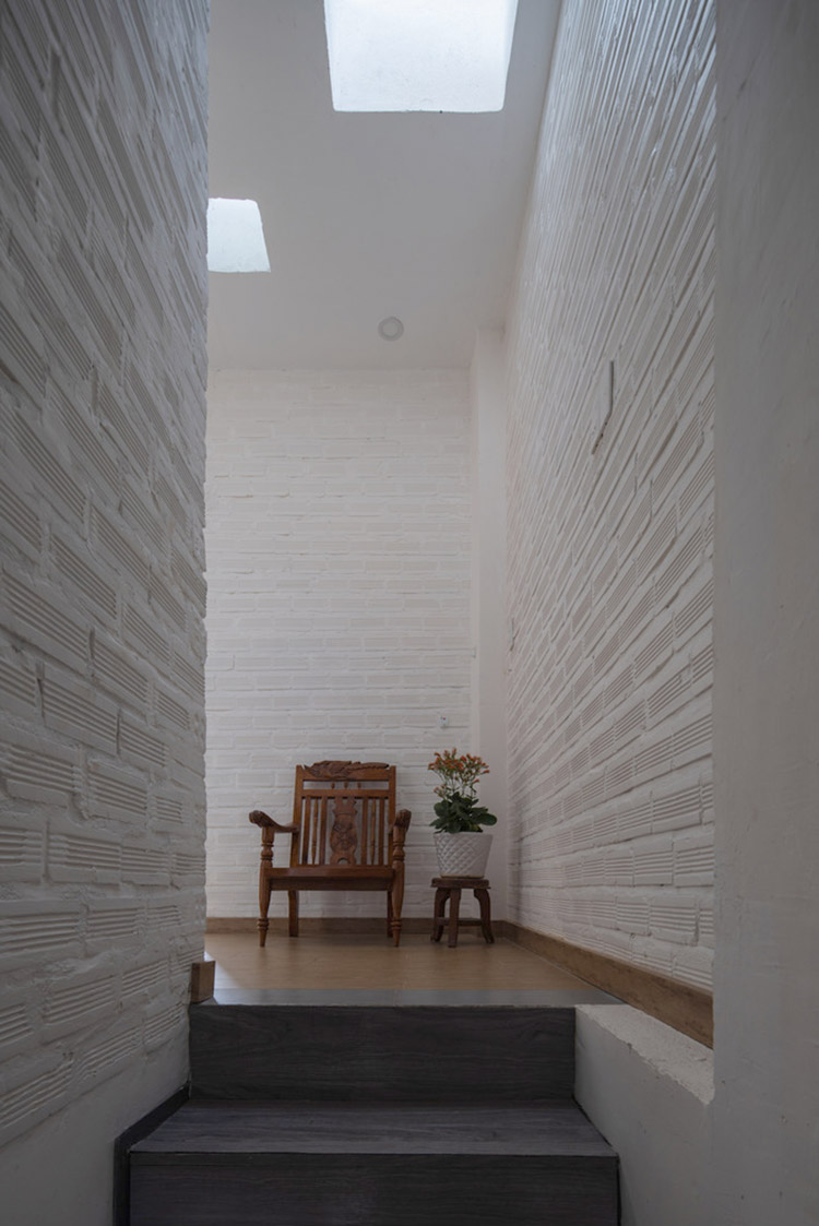 Bên cạnh vật liệu cũ, phần hoàn thiện với tường gạch thô và bê tông trần tiết kiệm chi phí xây dựng cho ngôi nhà và giúp không gian trở nên thô mộc, thân thuộc hơn.