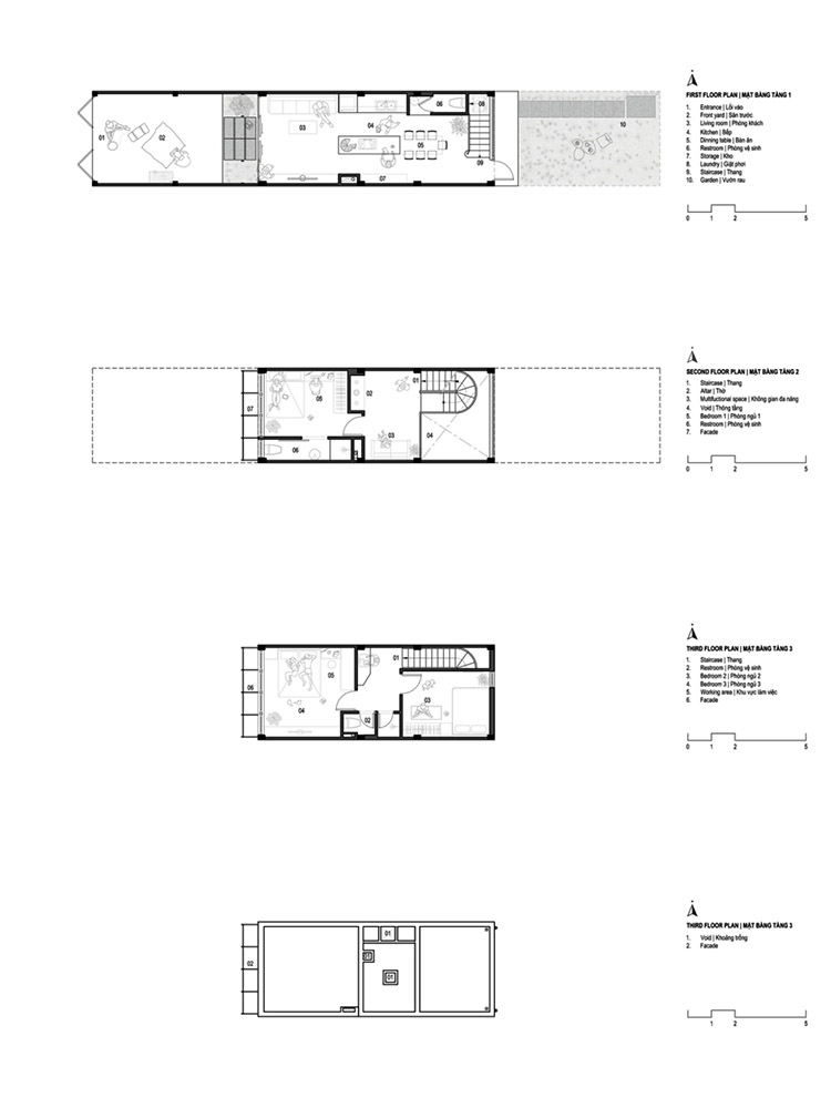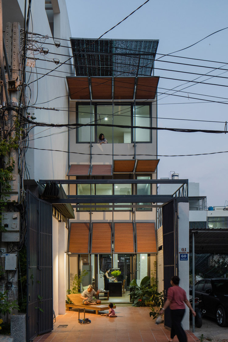 Ngôi nhà trên khu đất 4 x 24 m trong một khu tái định cư ở Nha Trang dành cho gia đình ba thế hệ.