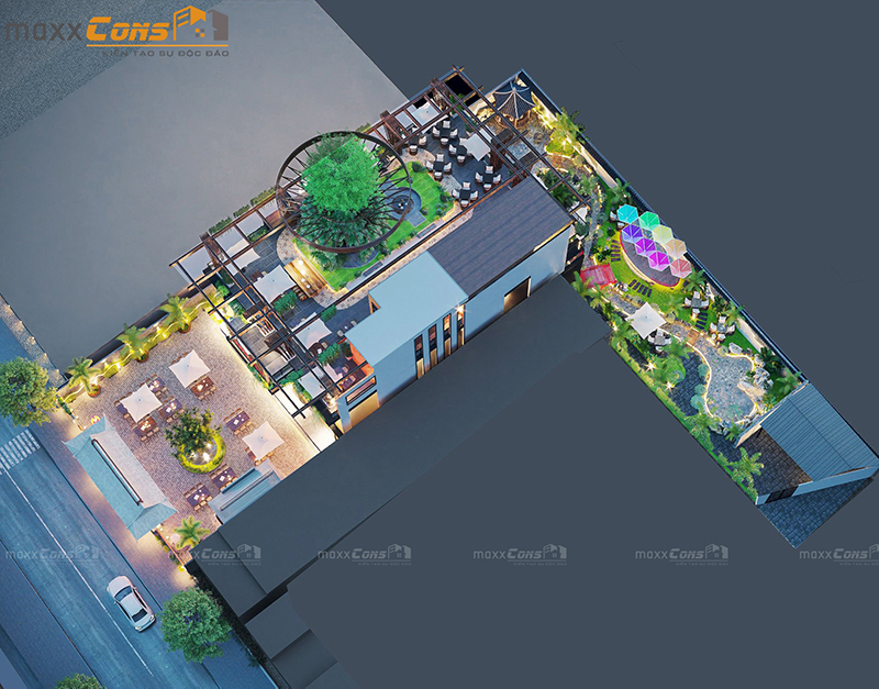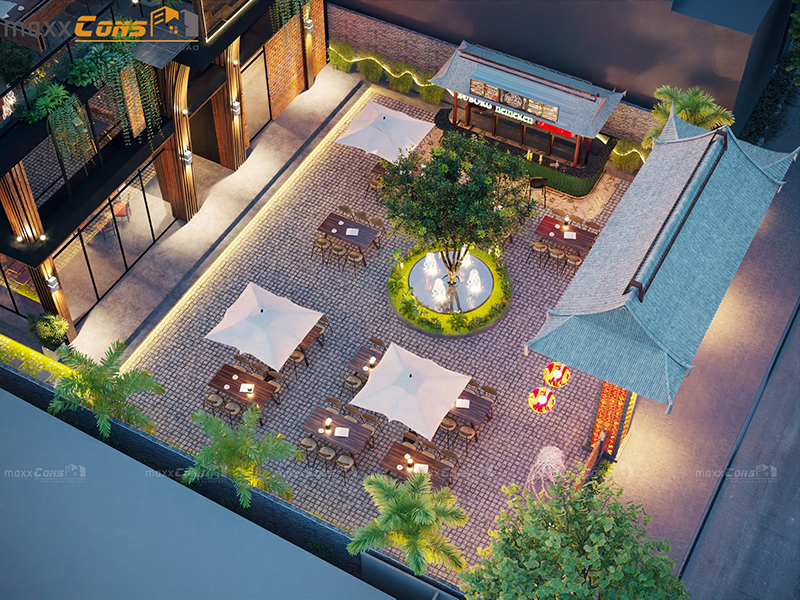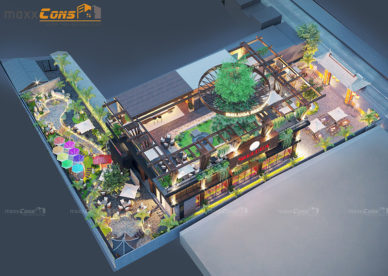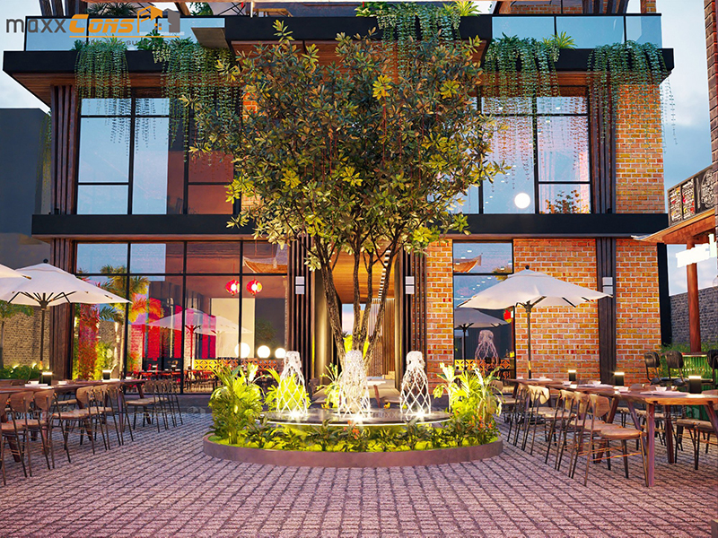 Khi kiến trúc không chỉ là xây dựng mà còn là nghệ thuật truyền cảm hứng, thì mẫu thiết kế nhà hàng cafe ngoài trời do maxxCons thực hiện đã thể hiện trọn vẹn tinh thần ấy. Một công trình độc đáo, giao thoa giữa hơi thở hiện đại và tinh hoa truyền thống, tạo nên không gian lý tưởng cho những buổi hẹn hò, gặp mặt, hay đơn giản là tận hưởng một buổi tối thư giãn giữa thiên nhiên.