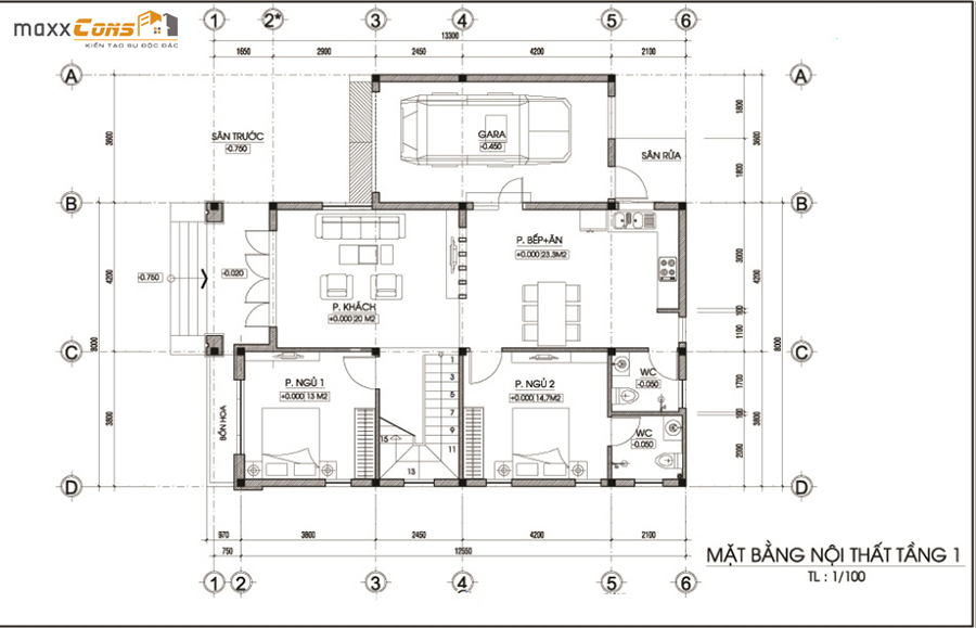 3.1. Mặt bằng tầng 1 – Không gian sinh hoạt chung tiện nghi