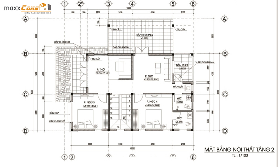 3.2. Mặt bằng tầng 2 – Không gian riêng tư và thư giãn