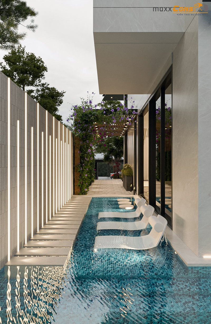 Biệt thự nghỉ dưỡng hiện đại có hồ bơi này có diện tích không quá rộng ( chỉ hơn 11 m mặt tiền phần được xây dựng ) nhưng vẫn sở hữu những tiện ích cực hấp dẫn, đủ để tạo ra một chuỗi các hoạt động thú vị và đầy sức sống cho mỗi thành viên trong đại gia đình. Tại đây, bạn sẽ cảm nhận được sự thư giãn và giải phóng hoàn toàn năng lượng tích tụ hay stress trong cuộc sống.