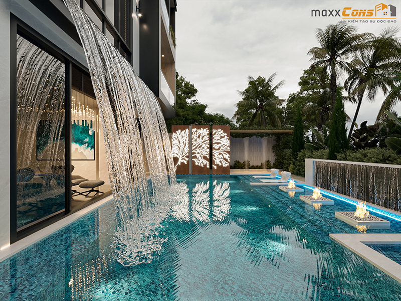 Thác nước mát rượi tại hồ bơi