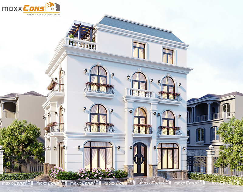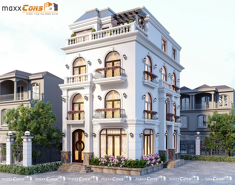 Mẫu thiết kế biệt thự với hai mặt tiền thoáng và tràn ngập ánh sáng sẽ là không gian sống cực kỳ thú vị cho chủ nhân. Hãy liên hệ maxxCons để được sở hữu không gian tuyệt vời như này nhé