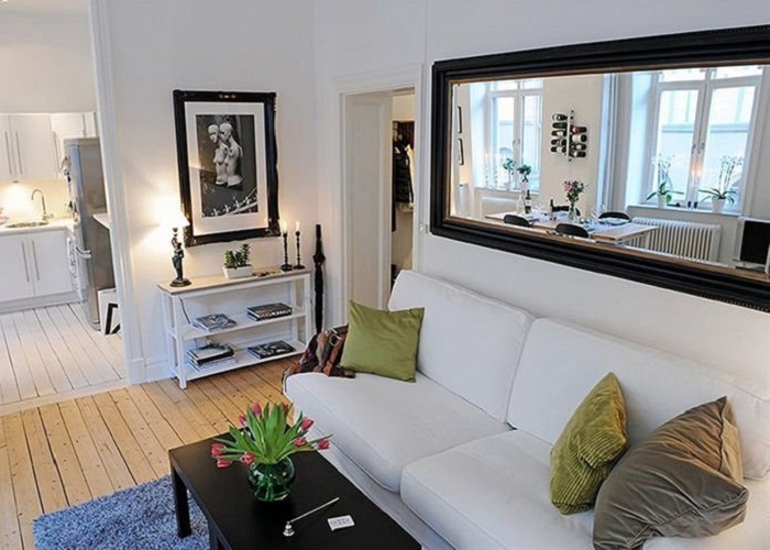 Ngôi nhà có diện tích nhỏ thì khi bước chân vào nhà chúng ta khó tránh được việc đối diện với các bức tường vì thế hãy “xóa” đi bức tường nhà bạn bằng một chiếc gương lớn, mọi thứ trông sẽ rộng lớn hơn nhiều.
