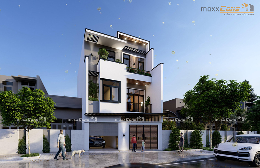 Quý khách hàng cùng tham khảo mẫu thiết kế biệt thự phố hiện đại nếu yêu thích mẫu kiến trúc này hãy liên hệ maxxCons để được tư vấn thiết kế kiến trúc miễn phí nhé!