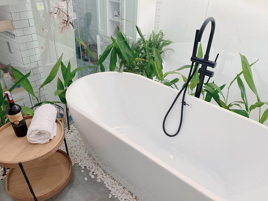 Khu vực phòng tắm đẹp lãng mạn, thoáng sáng và ngập tràn cây xanh.