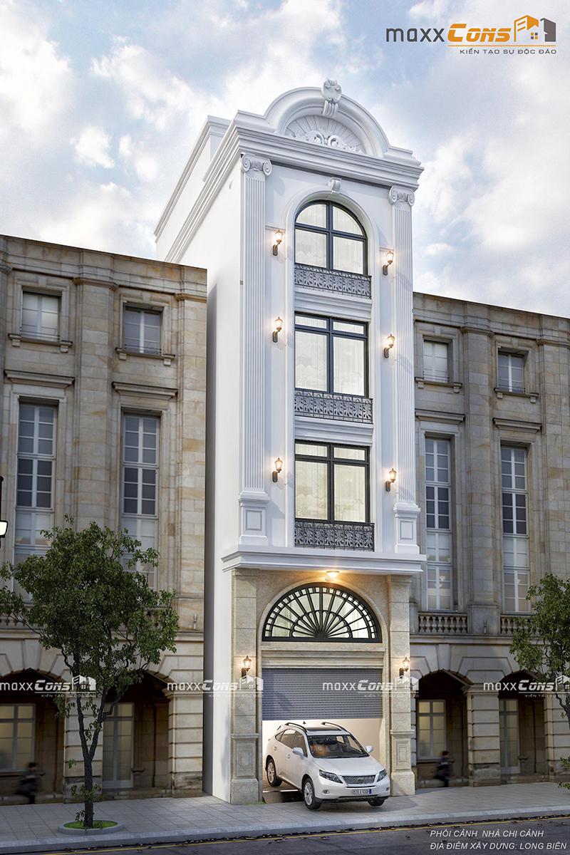 Thiết kế nhà lô phố phong cách tân cổ điển nhà khách ở Ngọc lâm - Long Biên -Hà Nội với tổng diện tích xây dựng là 200m2 được xây dựng 4 tầng với các công năng như sau: