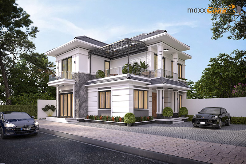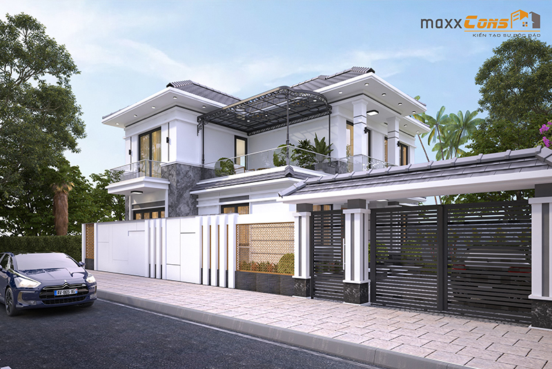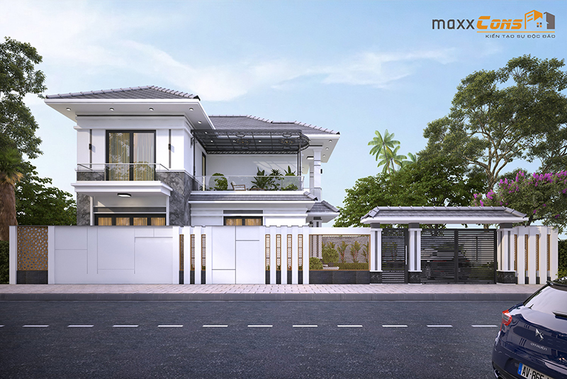 Mẫu nhà phố mái thái ấn tượng thiết kế nhẹ nhàng tinh tế độc đáo sáng tạo và mới lạ. Tổng thể công trình nổi bật trong từng chi tiết thiết kế, màu sắc và vật liệu. Với kiến trúc hiện đại nhẹ nhàng, kết hợp cùng mái thái truyền thống, ngôi nhà phố hiện đại 2 tầng đã hoàn toàn chinh phục được trái tim của gia chủ. Đặc biệt, dưới bàn tay thiết kế của đội ngũ kiến trúc sư trẻ tài năng maxxCons, công trình 2 tầng còn đáp ứng yêu cầu của chủ đầu tư về công năng sử dụng cũng như kiến trúc ngoại thất và sân vườn.