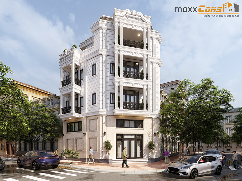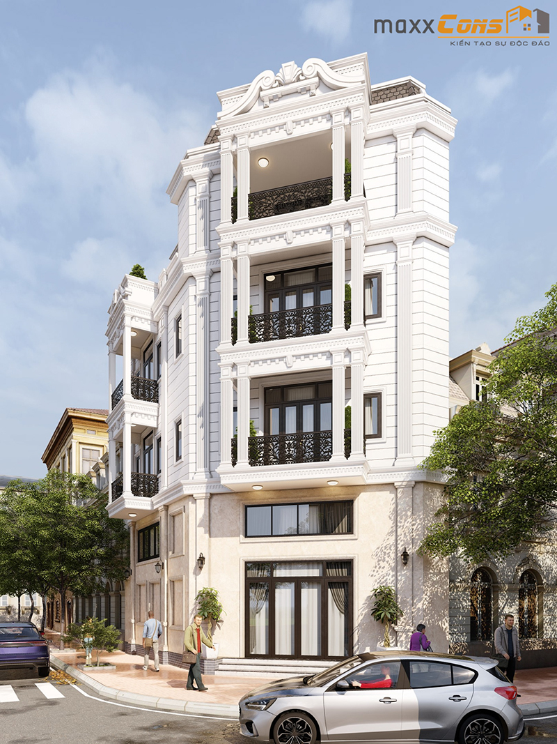 Những mẫu thiết kế kiến trúc nhà phố được lựa chọn thiết kế theo phong cách tân cổ điển lại được nằm ở vị trí lô góc "hai mặt tiền" đều là những mẫu nhà mang trong mình vẻ đẹp sang trọng thanh lịch, pha nét hoàng gia, sang trọng trong mọi ánh nhìn