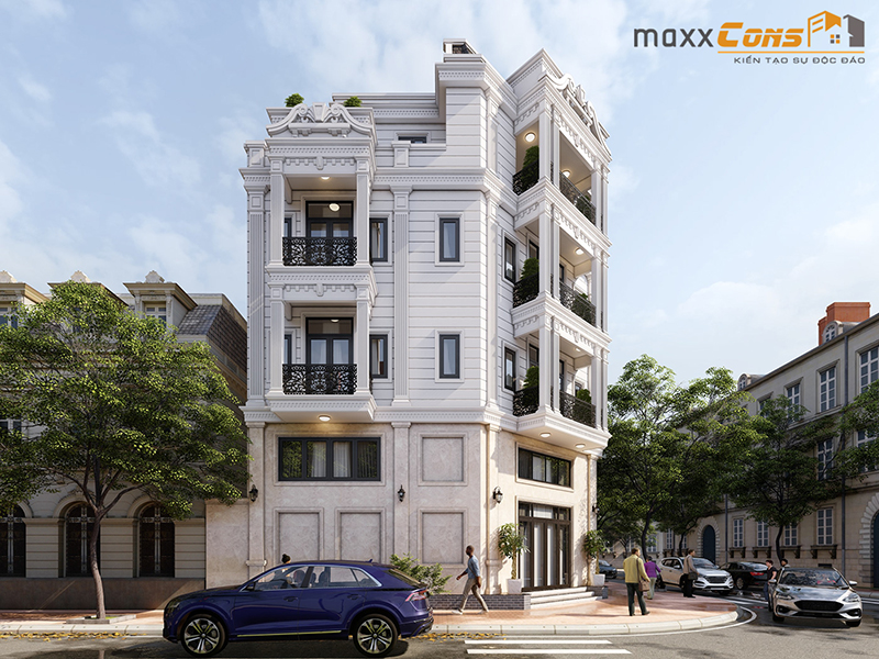 Kiến trúc maxxCons giới thiệu với độc giả mẫu thiết kế nhà phố lô góc 6x13m phong cách tân cổ điển dưới đây là một trong những mẫu thiết kế độc đáo, thoả mãn mong muốn thiết kế theo phong cách kiến trúc tân cổ điển của chủ đầu tư mời các bạn cùng tham khảo ý tưởng thiết kế dưới đây nhé!