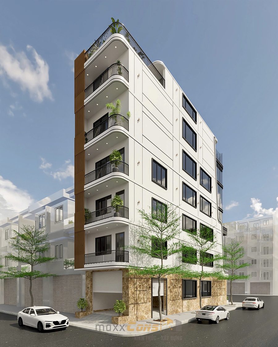 maxxCons đã tập trung khai thác đường nét thiết kế hiện đại, tôn vinh sự đồng bộ trong tổng thể của toà nhà. Màu sắc tầm trung, nhẫn nhụ bằng các tông trầm nhẹ kết hợp với những điểm nhấn màu sáng tạo nên sự độc đáo cho tòa nhà. Đặc biệt, khu vực ban công và tầng thương mại được thiết kế để khai thác tối đa ánh sáng tự nhiên, tăng cường không gian xanh.